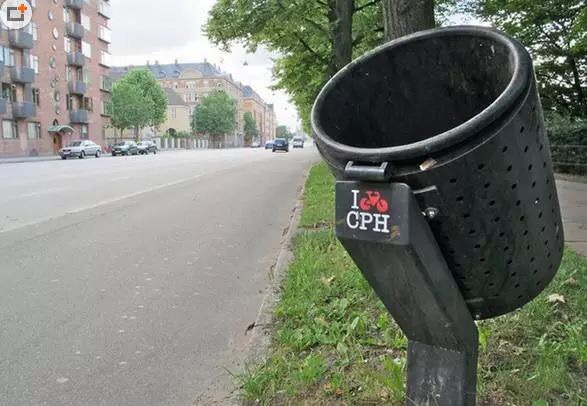 丹麥街邊常見的室外垃圾桶就是這種矮小的歪脖子垃圾桶,因為丹麥國內擁有大量的人使用自行車,所以這種垃圾桶的設計是為了方便人們在騎行過程中能夠正常丟垃圾,這些細小的設計無一不體現著這個地方對于環保的重視。我們可以從這些室外垃圾桶中感受到設計者們的用心和人們對于干凈、整潔的生活環境的追求。